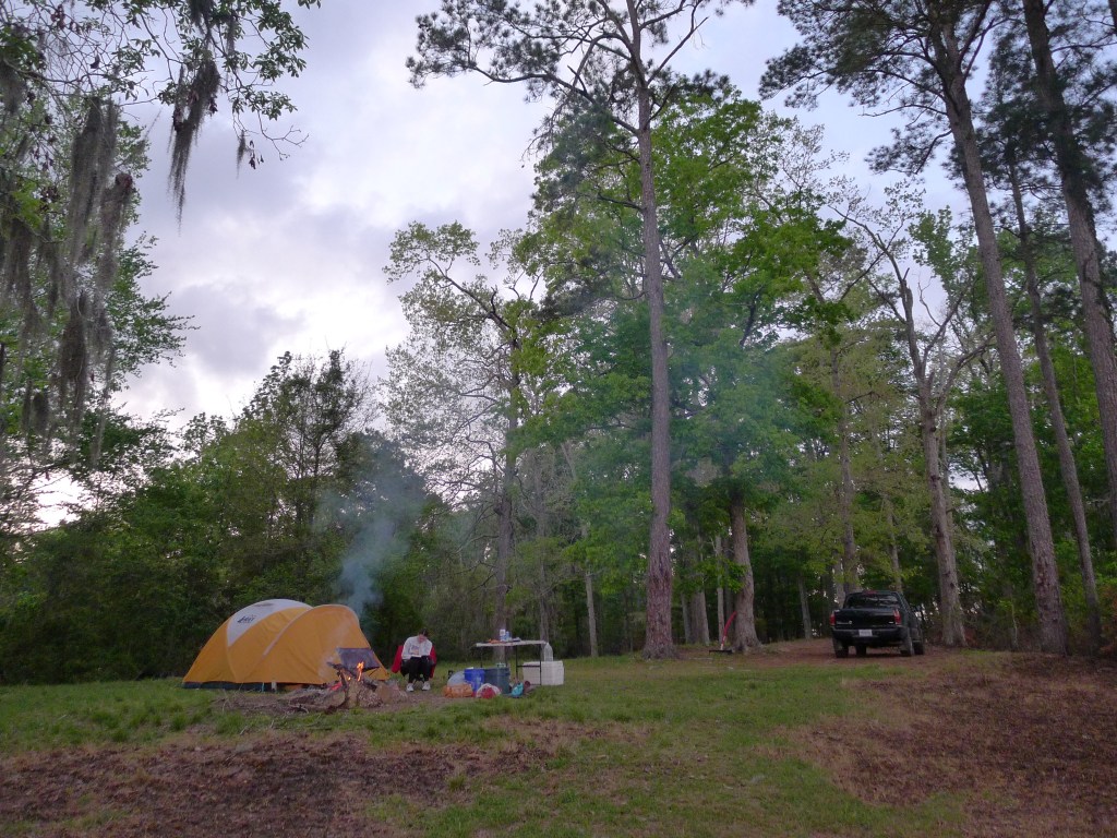 In late March, a rare weather window opened where camping in Louisiana was actually comfortable, so my wife and I decided to finally break out some camping gear we got as wedding presents over two years ago. The lows were in the 60s and the highs in the upper 70s, so sleeping at night was comfortable and the water was warm enough for fish to be active. We packed up the camping gear and a kayak and headed about two hours northwest to the Indian Creek Recreation Area in Woodworth, Louisiana. This is an area run by the Louisiana Dept. of Agriculture and features a large reservoir and tons of campsites, both primitive and RV hook ups. The primitive campsites were nice and secluded, and almost all of them that we saw were right on the water. The only negative was that the whole area isn’t all that far from Interstate 49, so you could hear some road noise at night.